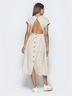 Оригинальное платье из коттона с открытой спинкой. Юбка полусолнце дополнена функциональными пуговицами сзади, в боковых швах вместительные карманы. Отлично подойдёт обладательницам типа фигуры "груша" и "прямоугольник".