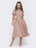 Практичное платье-кимоно из льна с разрезом спереди. Модель с контрастной отстрочкой на полочке и удобными карманами в боковых швах. Тканевый пояс в комплекте. Отлично смотрится на любом типе фигуре, так как добавляет недостающее и скрывает излишнее.