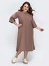 Платье свободного кроя с контрастной вышивкой по рукаву. Застегивается на молнию сзади.