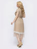 Платье приталенного силуэта декорировано кружевом и сеткой по низу. Пояс в комплекте.