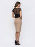 Элегантное платье, выполненное из комбинации креп-дайвинга и сетки с флоковым напылением в «горошек». За счет оригинального дизайна изделие деликатно обнажает спину и визуально вытягивает силуэт. Подойдет обладательницам типов фигуры «прямоугольник», «груша» и «песочные часы».