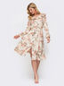 Летящее платье в нежный цветочный принт с оборками. Талия и горловина выполнены резинкой. На полочке изделие декорировано рядом пуговиц. Пояс в комплект не входит.