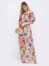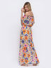 Платье-макси из принтованного шифона с открытой линией плеч. Модель с эластичной деталью в манжетах и горловине. В изделии предусмотрен подъёмник.