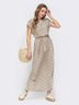 Принтованное платье-макси с эластичной деталью в поясе. Для комфорта при ходьбе предусмотрены разрезы по бокам. Тканевый пояс в комплекте.
