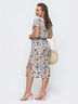Летнее платье в нежный цветочный принт с лифом на запах. Талия присобрана на эластичную тесьму. Для удобства при ходьбе по бокам предусмотрены разрезы. Комплектуется поясом из основной ткани.