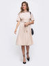 Стильное платье с отложным воротником. Застегивается на пуговицы по полочке. Пояс из основной ткани в комплекте.