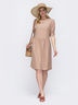Платье свободного кроя из софта с отрезом по талии. Короткий рукав выполнен на манжете. Спинка изделия удлинена.