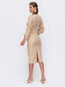 Элегантное платье приталенного силуэта с завышенной линией талии и V-образным вырезом. Модель длины миди за счет своего кроя визуально вытягивает силуэт. Рукава длиной ¾ выполнены с декоративными защипами вдоль всей длины.