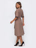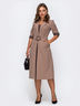 Оригинальное платье из костюмной ткани с классическим английским воротником. Украшают модель вставки из сетки в горошек на юбке и рукавах. Съемный пояс из основной ткани в комплекте. Прекрасный вариант для создания как стильного делового, так и повседневного образа.