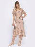 Женственное платье из софта в нежный цветочный принт с треугольным вырезом горловины. Модель приталенного кроя с удлиненным по спинке воланом. Короткие расклешенные рукава с разрезом подчеркнут изящные руки. Застёжек в изделии не предусмотрено.