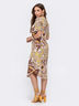 Платье прямого кроя из принтованного штапеля с закругленным подолом. Модель с коротким рукавом и фигурным вырезом на полочке. Застегивается сзади на пуговицу.