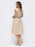 Женственное платье с треугольным вырезом на спинке и эластичной деталью в поясе. В боковых швах удобные карманы. Дополняет модель вшитый спереди пояс, завязывающийся на бант.