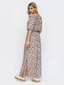 Платье-макси в мелкий цветочный принт из мягкого штапеля с открытой линией плеч. Горловина на завязках и талия выполнены эластичной тесьмой. По бокам высокие разрезы и удобные карманы.