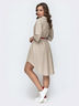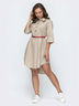 Повседневное платье-рубашка с удлиненной спинкой. В боковых швах предусмотрены карманы. Застегивается на пуговицы по планке. Комплектуется контрастным поясом.