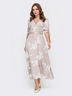 Платье из принтованой вискозы, отрезное по линии талии. Модель с прорезными карманами по бокам. Застёгивается на пуговицы по полочке.