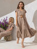 Женственное платье из жатой льняной ткани с широким воланом по подолу. Модель отрезная по талии с фиксированным запахом на груди и с эластичной деталью в поясе. В боковых швах предусмотрены карманы. Съёмный пояс с массивной пряжкой в комплекте.