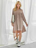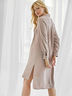 Свободное платье-рубашка из тонкой костюмной ткани с удлиненной спинкой и разрезами по бокам. Рубашечный верх с декоративными защипами на полочке. Застегивается спереди на пуговицы.