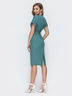 Платье приталенного силуэта из тонкой костюмной ткани. Изделие с прорезными карманами в боковых швах и коротким рукавом с подворотом. Застегивается на молнию сзади.