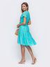 Платье-трапеция из актуальной прошвы с рукавом «крылышко». Низ изделия дополнен широким воланом. В комплекте пояс из основной ткани.