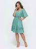 Воздушное платье из шифона с вышивкой плюмети нежного ментолового цвета. Модель с треугольным вырезом горловины и вафельной сборкой на талии. По низу изделие дополнено двухъярусными оборками. На тонкой трикотажной подкладке.