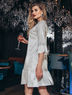 Женственное платье свободного кроя из тонкого трикотажа “shining”. Рукав и подол изделия дополнены широким воланом. Отлично подойдёт обладательницам фигуры типа "песочные часы", "груша", "прямоугольник".