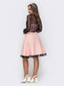 Романтичное платье из костюмной ткани с расклешенной юбкой. Фигурная кокетка и рукав выполнены из фатина в крупный горох. Застёгивается на молнию по спине. Подойдёт для типа фигуры «груша», «перевернутый треугольник» и «прямоугольник».
