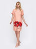 Платье-футболка из поликоттона с принтом на полочке. Застегивается на молнию на спинке.