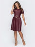 Платье из искусственной кожи с юбкой-плиссе и поясом в комплекте. Застегивается на молнию сбоку.