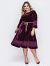 Женственное платье расклешенного кроя из бархатистого велюра. Модель дополнена вставками из гипюра на рукавах и подоле юбки. Пояс в комплекте.