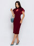 Экстравагантное платье-миди с вырезом «капля» в области лифа. Лаконичный дизайн платья дополнен сеткой на рукавах «крылышко» и горловине. Юбка дополнена шлицей сзади. Подойдет обладательницам типов фигуры «груша» и «песочные часы».