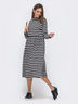 Полосатое платье с воротником стойка из мягкой ангоры. Модель отрезная по талии с расклешенной юбкой. Застегивается сзади на пуговицу у горловины. Базовый вариант для создания повседневного образа в прохладное время года. Подойдет на фигуру «груша» и «перевёрнутый треугольник».