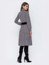 Закрытое платье из французского трикотажа в «гусиную лапку» с воротником-стойкой. Юбка в мягкую складку с карманами в боковых швах. Застегивается на молнию сзади. Пояс в комплект не входит. Отлично подойдёт обладательницам фигуры «прямоугольник», «песочные часы» и «груша».