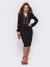 Силуэтное платье из костюмной ткани с V-образным вырезом горловины. Изделие с вставкой из кружева на рукаве и полочке. Застегивается на молнию сбоку. Хорошо подойдёт обладательницам типа фигуры "песочные часы" и "прямоугольник".