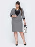 Повседневное платье приталенного кроя из французского трикотажа оригинальной расцветки. Изделие дополнено контрастной вставкой и украшением на полочке. Сзади разрез. Предусмотрены подплечники.