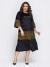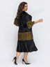 Элегантное платье свободного кроя из мраморного велюра. Расклешённый рукав и горизонтальная вставка на юбке расшиты пайетками. Фасон и особенности ткани помогут скрыть незначительные нюансы фигуры и сделают образ притягательным.
