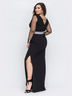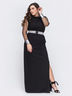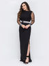 Изящное платье макси с высоким разрезом сбоку. Модель приталенного кроя с длинным прозрачным рукавом из мягкой сетки в горох. На спинке глубокий V-образный вырез и скрытая застежка-молния. Дополняет образ съёмный эластичный пояс с металлической пряжкой.