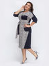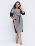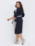 Оригинальное платье приталенного силуэта из французского трикотажа. Модель с контрастной вставкой на полочке с геометрическим рисунком. Рукав зафиксирован шлёвкой, по бокам предусмотрены карманы. Съёмный двухсторонний пояс в комплекте.