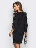 Коктейльное платье прямого кроя из костюмного крепа. Расклешенный рукав ¾ с вырезами на завязках и необработанными краями. Прекрасно подойдет для обладательниц фигуры «прямоугольник».