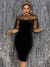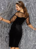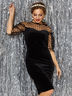 Элегантное платье-футляр из мягкого велюра с короткими рукавами-фонариками. Модель c прозрачной кокеткой из мягкой сетки в горошек. Идеально подчеркнет плавные изгибы фигуры «песочные часы».
