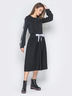 Платье в стиле oversize с контрастными лампасами. Модель отрезная по талии с пышной юбкой. Застёгивается на молнию сзади. Хорошо подойдёт девушкам с фигурой "прямоугольник" и "яблоко".