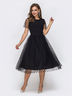 Романтичное платье из креп-дайвинга с расклешенной юбкой. Модель отрезная по линии талии, дополнена сеткой в мелкий горох. Застёгивается на потайную молнию сбоку. Хорошо подойдёт обладательницам типа фигуры "прямоугольник", "песочные часы" и "груша".