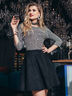 Вечернее платье в стиле baby-doll. Верх выполнен из блестящего люрекса. Юбка полусолнце из креп-дайвинга с замшевым напылением. Застёгивается на скрытую молнию по спинке. Хорошо подойдёт обладательницам типа фигуры «прямоугольник», «песочные часы», «треугольник».