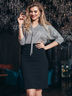 Нарядное платье-футляр из комбинированных тканей. Цельнокроеный верх с рукавом «летучая мышь» выполнен из фактурного трикотажа люрекс. Для удобства сзади на юбке предусмотрен разрез и эластичная деталь на талии. Пояс в комплекте. Прекрасно подойдет для типов фигуры «перевёрнутый треугольник» и «песочные часы».