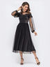 Грациозное платье из комбинации тканей креп-дайвинга с блестящим напылением и фатина. Плотное кружево по линии плеч делает выразительными ключицы. Модель отрезная по талии. Идеальное платье для создания женственного вечернего образа. Застёгивается на молнию по спинке. Хорошо подойдёт обладательницам фигуры типа "груша" и "прямоугольник".