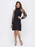 Стильное платье приталенного силуэта из лёгкого креп-шифона. Объёмный рукав «реглан» выполнен воздушной сеткой в «горох». Изделие застегивается на пуговицы сзади. Хорошо подойдёт обладательницам типа фигуры "песочные часы" и "прямоугольник".