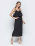 Женственное платье на узких бретелях пересекающихся по спинке. Модель дополнена оборкой по груди. Застёгивается на потайную молнию сбоку. Хорошо подойдёт девушкам с типом фигуры "песочные часы" и "прямоугольник".