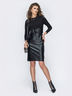 Комбинированное платье с юбкой из искусственной кожи. Широкий пояс с пряжкой вшит.