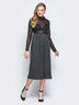 Теплое платье-миди. Модель с чуть завышенной линией по талии с резинкой под грудью. Рукава и кокетка выполнены из триекотажа-травка. Застегивается на пуговицу сзади. Подойдет для девушек с фигурой яблоко.