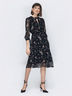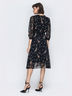 Женственное платье из струящегося шифона с рукавом 3/4. Изделие с фигурным вырезом горловины и расклешенной юбкой. В поясе предусмотрена эластичная деталь. Хорошо подойдёт обладательницам типа фигуры "песочные часы" и "груша".