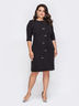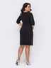 Строгое платье приталенного кроя с декором в виде фурнитуры. На спинке скрытая застёжка-молния.